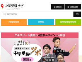 80%『中学受験ナビ』は、中学受験を検討する保護者の方のための情報サイトです。中学受験の基本情報から、塾選び、学校選びに至るまで、受験を成功に導くための情報を掲載しています。「そもそも受験はするべき?」「子どもにあった勉強法は?」「親として子どもに何をしてあげたらいいの?」など中学受験に関するさまざまな悩みの解決をお手伝いします。