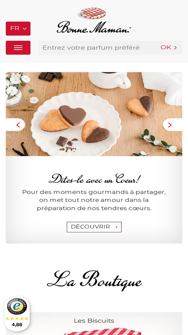88%Les bons ingrédients frais et le savoir-faire authentique sont le secret du goût unique des confitures, desserts et biscuits Bonne Maman. Du petit-déjeuner au goûter, laissez les doux souvenirs d'enfance vous bercer...