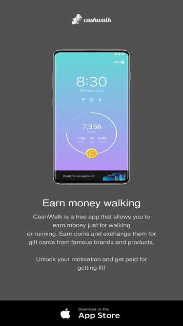 80%With this free app, you can get coins simply by walking. You can redeem them for gift cards from your favorite brands! Your steps, your wealth - with CashWalk.