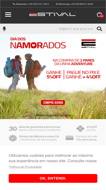87%a loja estival é especializada em calçados de segurança masculino e feminino e possui diversos modelos como: adventure, energy, tênis e work.