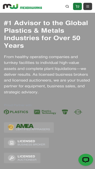 100%Meadoworks: 50+ years buying, selling & auctioning used plastics & metalworking equipment. Licensed auctioneers & business brokers. Call 800-323-0307.