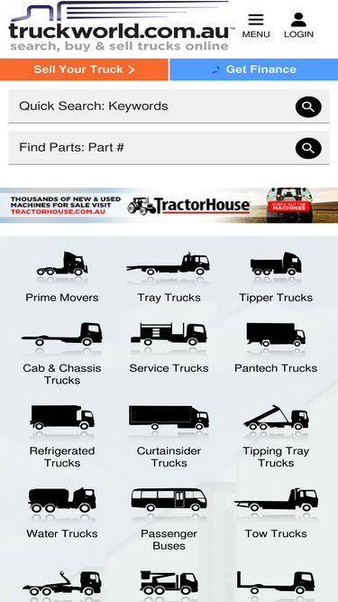 82%TruckWorld Australia is the go-to source for buying and selling new & used Trucks. Buyers can find a full range of Prime Movers, Tray Trucks, Tipper Trucks, Cab & Chassis Trucks, Service Trucks, Pantech Trucks, Refrigerated Trucks, Curtainsider Trucks, Tipping Tray Trucks, Water Trucks, Passenger Buses, Tow Trucks, Hooklift Trucks, Cherry Picker Trucks, Beavertail Trucks, Crane Trucks, Trailers, Semi-Trailers, Truck Components, Wrecking Trucks, Truck Parts, and more at TruckWorld Australia