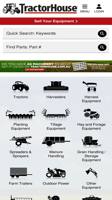 100%TractorHouse Australia is the go-to source for buying and selling new & used Farm Machinery. Buyers can find a full range of Tractors, Harvesters, Harvest Equipment, Planting Equipment, Tillage Equipment, Hay and Forage Equipment, Spreaders & Sprayers, Manure Handling, Grain Handling / Storage Equipment, Farm Trailers, Outdoor Power, Other Equipment, Livestock Equipment, Irrigation Equipment, Specialty Crop Equipment, UTV / ATV / Bikes, Air Compressors, Power Systems, Dismantled Farm Machinery, Attachments, Farm Machine Parts, and more at TractorHouse Australia