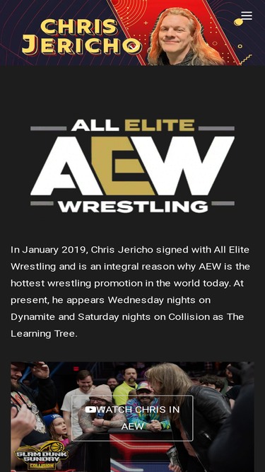 In January 2019, Chris Jericho signed with All Elite Wrestling and is an integral reason why AEW is the hottest wrestling promotion in the world today. He currently appears every Wednesday night on the TBS as AEW’s top star and leader of the Jericho Appreciation Society.