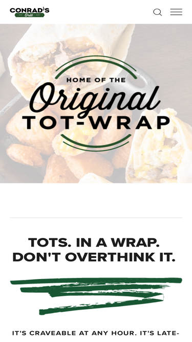 Conrad’s Grill offers original tot wraps and sandwiches for breakfast, lunch, or dinner. Visit their restaurants or have it delivered to your doorsteps!