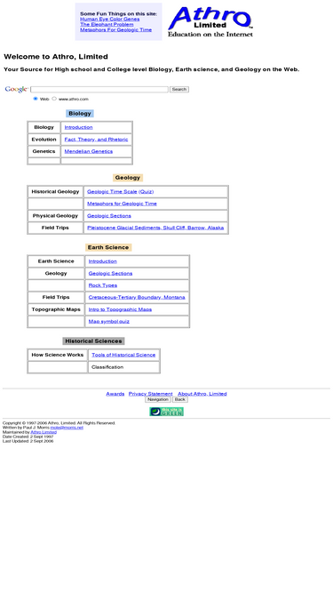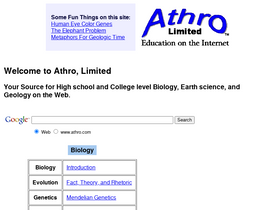100%athro, limited offers interactive exercises in biology and geology including genetics, evolution, and historical geology