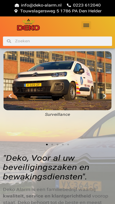 Contact Deko Alarm & Beveiligingstechniek BVDeko Brand & Veiligheidsadvies BVDeko Bewaking BV Bezoekadres:Touwslagersweg 51786 PA Den Helder Postadres:Postbus 1641780 AD Den Helder Telefoon: 0223-612040E-Mail: info@deko-alarm.nl Openingstijden kantoor: maandag 08:00 – 17:00 Dinsdag 08:00 – 17:00 Woensdag 08:00 – 17:00 Donderdag 08:00 – 17:00 Vrijdag 08:00 – 15:00 Zaterdag Gesloten Zondag Gesloten Feestdagen Gesloten Storingsmeldingen kunnen […]