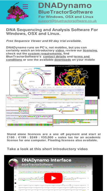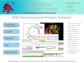 95%dnadynamo - for windows, osx and linux. download it now for abi/scf trace alignments, sub cloning and plasmid management, blast/sequence retrieval, sequence annotation and structure viewing - all in one integrated and easy to use bioinformatics program.