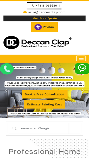 76%Deccanclap was Established by Industry Experts with Highly Experienced Professional painters and waterproofing specialists in Hyderabad, Bangalore, Visakhapatnam, Vijayawada, Pune, Mumbai, Delhi, Gurugram, Chennai, Aurangabad, Kolkata, Indore, Noida, Kochi, Bhopal, Ghaziabad, Offering Professional House painting and waterproofing services at 30% Lower tham market price and Flat 10% off on 1 st booking, offering professional interior and exterior painting services, you can reach us by searching painters near me or wall painting services near me, we are trained and experienced texture, Royale play texture designers in Hyderabad, Bangalore, Visakhapatnam, Vijayawada, Pune, Mumbai, Delhi, Gurugram, Chennai, Aurangabad, Kolkata, Indore, Noida, Kochi, Bhopal, Ghaziabad