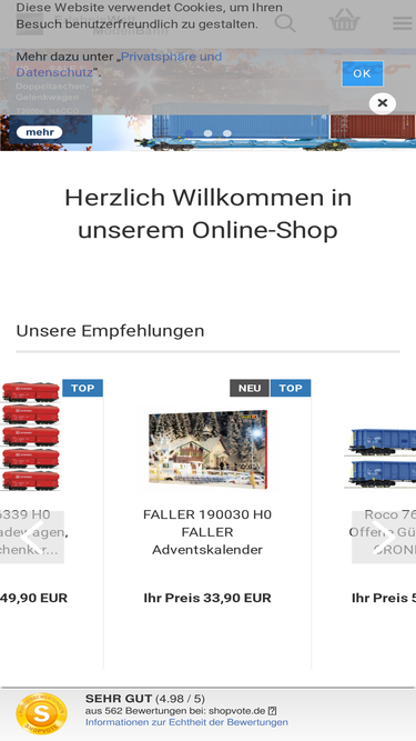 62%erlebniswelt modellbahn - onlineshop für modelleisenbahnen und zubehör. märklin, fleischmann, brawa, faller, heki, vollmer, roco, trix, selectrix und mehr.
