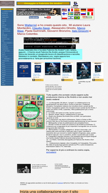 95%discografia, testi, immagini, copertine, tema del desktop, skins, bibliografia e tutto quello che serve agli appassionati di fabrizio de andré