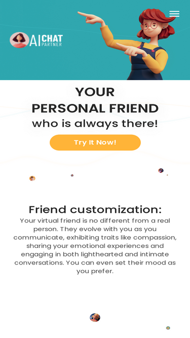 82%Yana is an artificial intelligence designed to provide you with emotional support whenever you need it most. You can confide your thoughts and emotions to Yana at any time and place, without fear of judgment. Whether you're looking to improve your mood or self-esteem, or simply vent on a tough day,