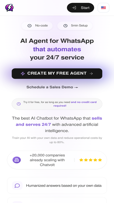 86%Plataforma de Agente de IA para WhatsApp que automatiza seu atendimento 24h. Chatbot inteligente para WhatsApp, Instagram e Site.