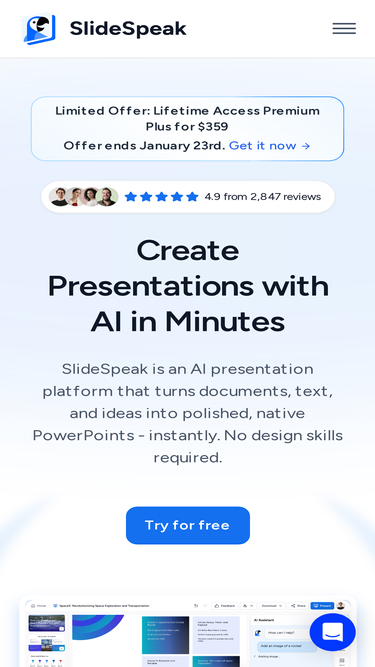 Create stunning PowerPoint presentations in seconds with Presentations.AI - the ultimate AI presentation maker. Just type your idea and watch as we craft a professional PPT for you. Perfect for all: businesses, educators, and hobbyists. Dive in now, start for free!