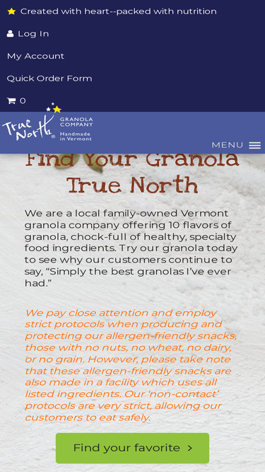 80%Privacy Policy True North Granola ("us", "we", or "our") operates the http://truenorthgranola.com website (the "Service"). This page informs you of our