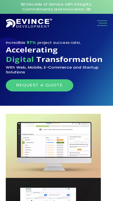 97%EvinceDev delivers AI-enabled digital transformation and custom software with clear ownership, disciplined execution, and systems built to perform in production.