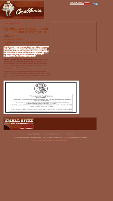 83%casablanca is harvard square's legendary 'neighborhood joint' on brattle street, a restaurant and bar with creative mediterranean cuisine, great cocktails and a mildly exotic atmosphere