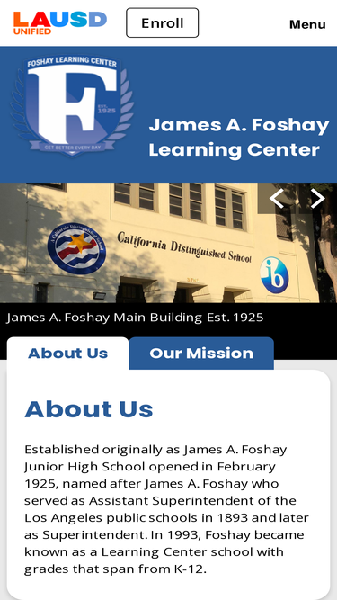 james a. foshay junior high school opened february 1925. in 1996 foshay received the honor of being named a california distinguished school.