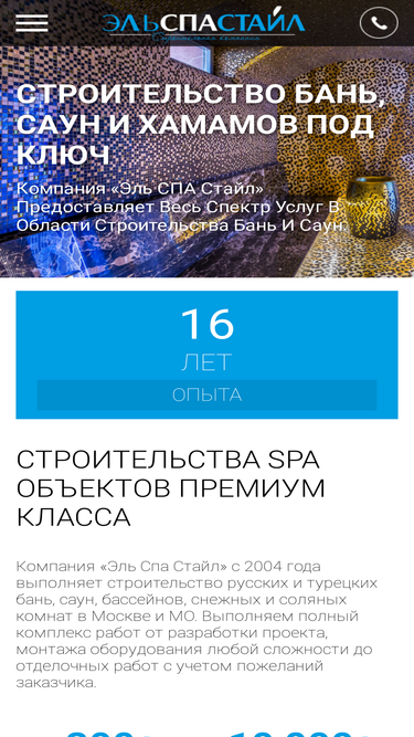 компания эль спа стайл 16 лет посвятила строительству турецких бань и саун под ключ. выполняем полный комплекс работ от проектирования сауны, монтажа оборудования до отделочных работ любой сложности.