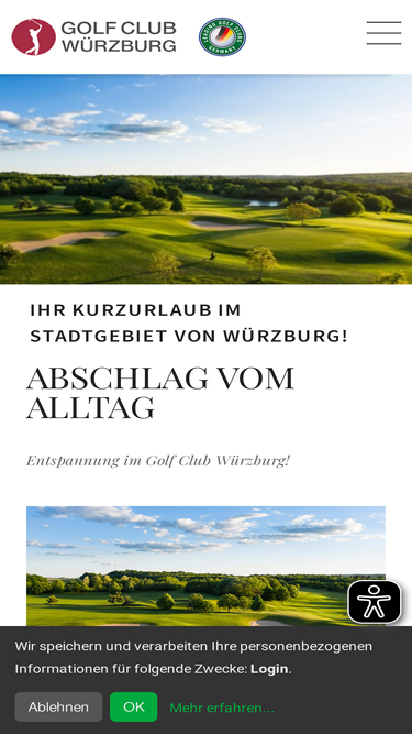 85%IHR KURZURLAUB IM STADTGEBIET VON WÜRZBURG! ABSCHLAG VOM ALLTAG Entspannung im Golf Club Würzburg! Buchen Sie hier online Ihre Startzeit und spielen Sie Golf sicher und entspannt ohne Wartezeit am ersten Abschlag! Aktuell und kompakt – die Neuigkeiten aus vielen Bereichen des Golf Club Würzburg zuhause am schönsten Ort der Welt Willkommen im Golf