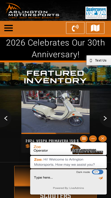 100%arlington motorsports is a motorsports dealership located in arlington heights, il. we carry atvs, motorcycles, scooters and trikes from many manufacturers such as genuine, kymco, lance, and sym. we also provide parts, service, and financing near the areas of buffalo grove, barrington, elmhurst and evanston