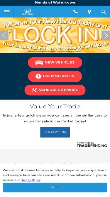 87%When you want a new Honda or a quality used car in Connecticut, the choice is clear: Honda of Watertown offers the service and selection you deserve!