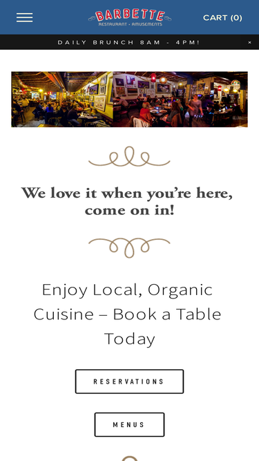 Barbette is a French-inspired brasserie in Uptown Minneapolis, serving local, organic cuisine, fine wine, and all-day dining in a lively setting.