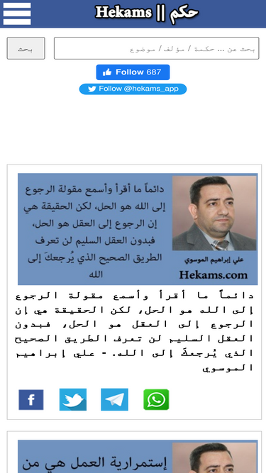 98%موقع حكم يحوي على آلاف الحكم والاقتباسات لأشهر الكتاب والمؤلفين في العالم والمصنفة حسب المواضيع كحكم الحب والحياة وحكمة اليوم