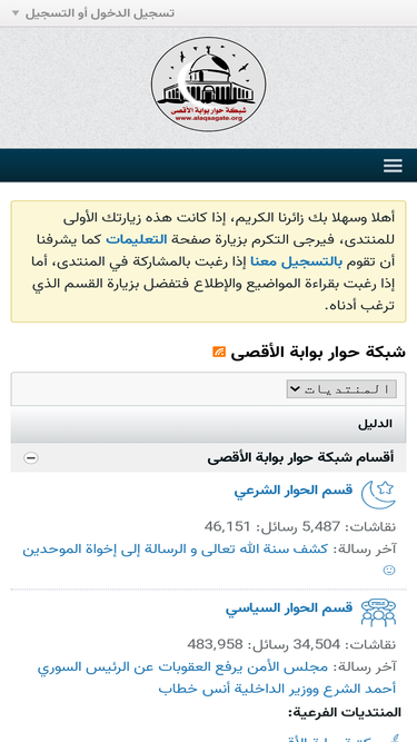 81%أهلا وسهلاً بكم في شبكة حوار بوابة الأقصى، نرحب بكل من كان الأقصى همّه