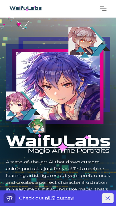 100%A state-of-the-art AI that draws custom anime portraits, just for you! This machine learning artist figures out your preferences and creates a perfect character illustration in 4 easy steps. If it sounds like magic, that's because it is!