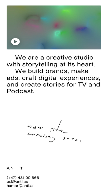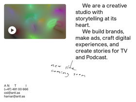 73%We are ANTI, a creative studio with storytelling at its heart. We build brands, make ads, craft digital experiences, and create stories for TV and Podcast.