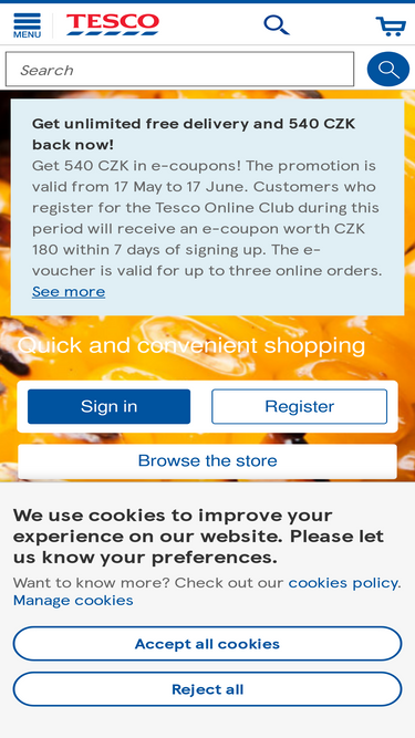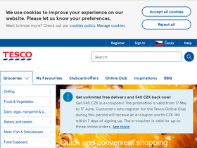 85%online food shopping is easy at tesco. you can also buy homeware and earn money-saving clubcard points. book a grocery delivery or click+collect slot today.