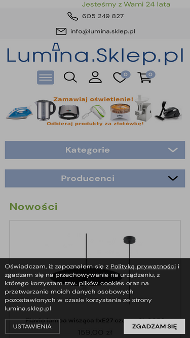 87%Lumina.Sklep.pl – Sklep z oświetleniem. Lampy, kinkiety, żyrandole, plafony, oprawy LED, systemy oświetleniowe. Oświetlenie domowe, biurowe, zewnętrzne, przemysłowe. Źródła światła.