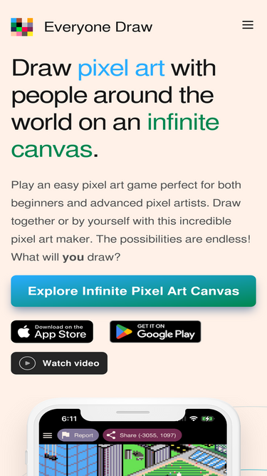 80%draw pixel art with people around the world on an infinite canvas.