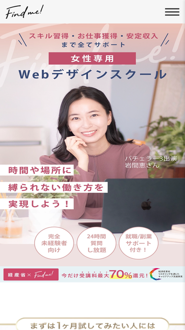 89%\何も知らなくて大丈夫!/ 女性限定!未経験者のためのWebデザインスクール スキルを身につけて、理想の年収、キャリアを手に入れよう! <月々4,980円〜><完全未経験者向け><24時間質問し放題><就職サポート お仕事紹介付き!>