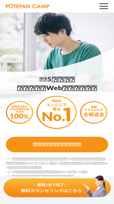 81%ポテパンキャンプへのお申し込みはこちら。申し込み後は無料カウンセリングを行い受講へのご案内をさせて頂きます。お気軽にお申し込みくださいませ。