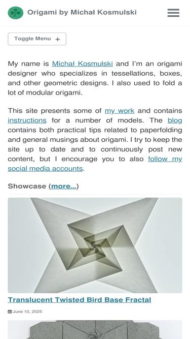 74%Origami tessellations are a technique which makes it possible to create complex, repeating patterns on a plane by folding a single sheet of paper. Tessellations can be folded as standalone models or be used as parts of more complex designs, for example as scales in a figurative model representing an animal or as decoration on origami boxes.