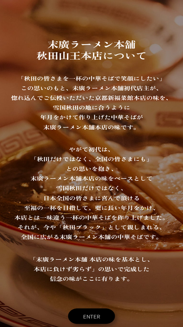 65%日頃より、末廣ラーメン本舗のホームページをご利用いただき誠にありがとうございます。 この度ホームページをリニューアルしましたので、お知らせします。 今回のリニューアルでショッピング機能を追加し、皆様にご自宅でも末廣ラーメンの味をお届けできるようになりました。その他、わかりやすく情報をお伝えすることを目指して、構成・デザインを見直すとともにコンテンツをさらに充実させました。 これまで以上に、使いやすいサイトを目指し新商品情報やコンテンツなど充実して参ります。今後も引き続きご愛顧賜りますようよろしくお願い申し上げます。
