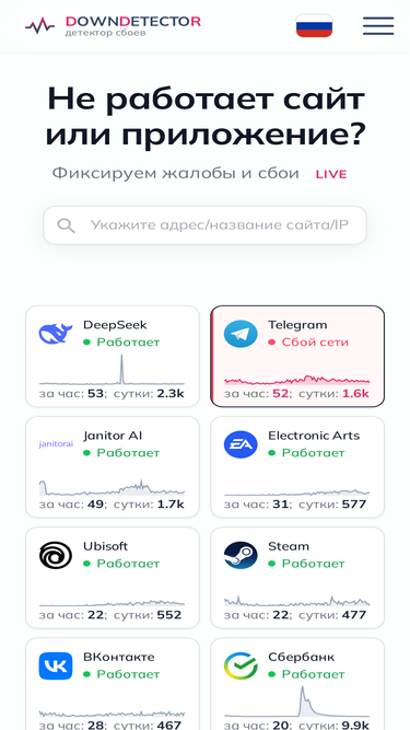 58%Сегодня наблюдаются проблемы в работе сайтов и приложений из категории «E-commerce»? Мониторинг популярных сервисов. Проверьте сайт!