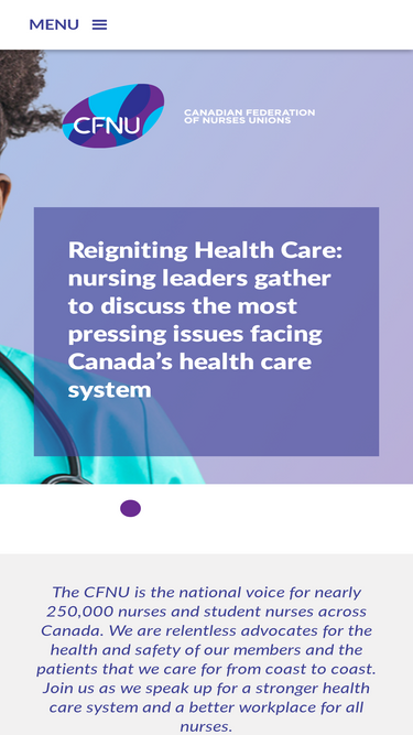 92%The Canadian Federation of Nurses Unions (CFNU) is the voice of nearly 200,000 unionized nurses and nursing students across the country.