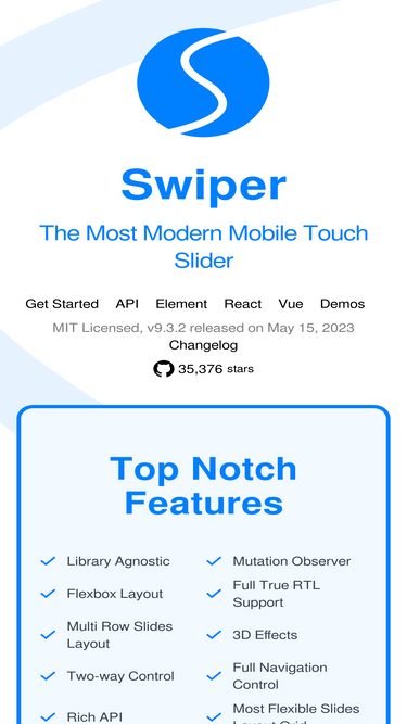 90%Swiper is the most modern free mobile touch slider with hardware accelerated transitions and amazing native behavior.