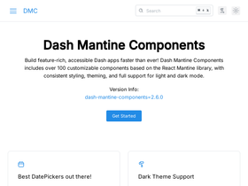 83%Documentation for Dash Mantine Components, a component library to use with Plotly Dash apps. 100+ customizable components built on the React Mantine library, with consistent styling, theming, full light/dark mode support, and accessibility out of the box.
