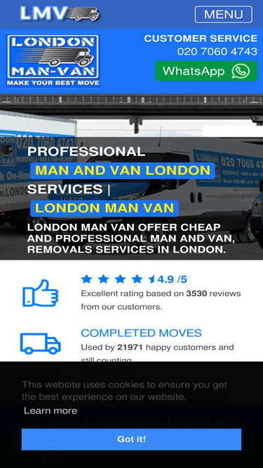 77%man and van rental is easy with our free instant hire quotes and fast booking. all drivers professional, vetted, reviewed. man with a van london experts.
