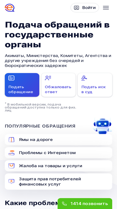 80%eOtinish сервисі келесі мүмкіндіктерді ұсынады: мемлекеттік органдардан ресми түрде ақпарат сұратуды ресімдеу; өтініш немесе шағым беру; туындаған проблемалар жайында хабарлау; құқықтарыңыз бен заңды мүдделеріңізді іске асыруға байланысты жәрдем сұрау; құқықтарыңыздың, бостандықтарыңыздың немесе заңды мүдделеріңіздің қорғалуын талап ету.