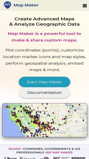 100%Map Maker: Plot and analyze location data with territories, filters, heatmaps, custom icons, area/distance, and more.