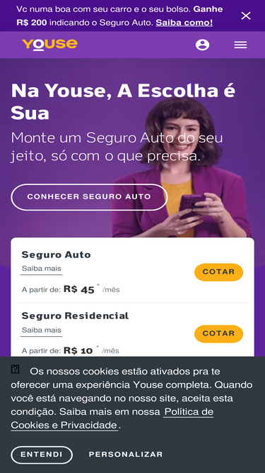 82%O seguro de vida precisa ter a sua cara. Na Youse é você quem escolhe as coberturas e assistências que quer contratar. Acesse e monte o seu seguro online.