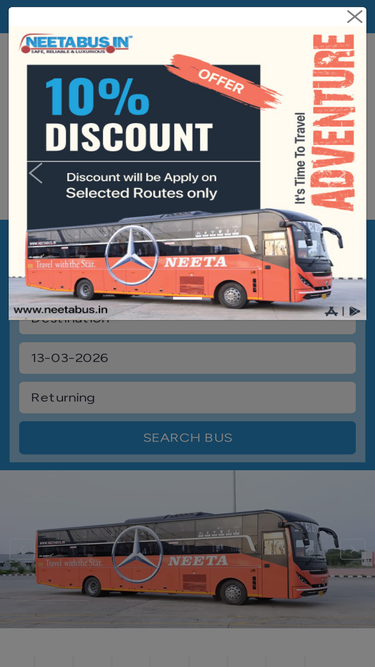 75%neeta tours and travels - online bus ticket booking, bus booking, volvo non ac bus booking, bus ticket booking, bus tickets, bus reservation