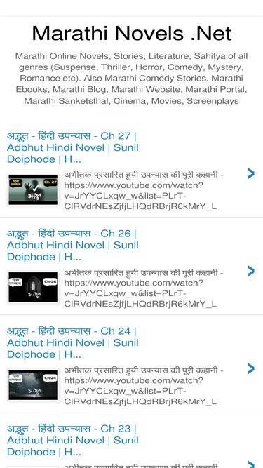 99%marathi online novels, stories, literature, sahitya of all genres (suspense, thriller, horror, comedy, mystery, romance etc). also marathi comedy stories. marathi ebooks, marathi blog, marathi website, marathi portal, marathi sanketsthal, cinema, movies, screenplays