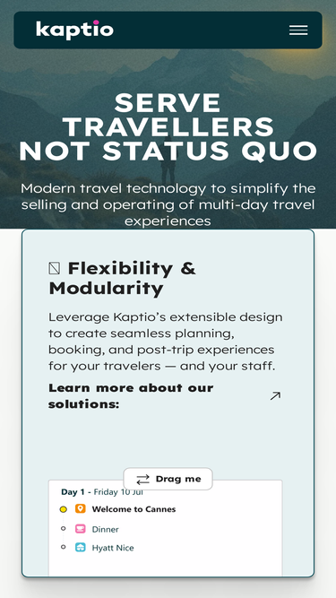 88%Multi-day travel is complicated. Kaptio is modern travel technology that simplifies the selling and operating of multi-day travel experiences.