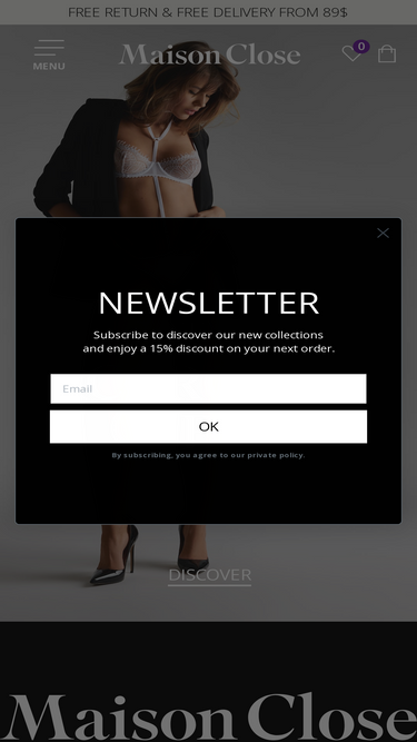 87%Maison Close is a daring high-end lingerie brand. Free delivery from $200 and free returns. Sensual bras, knickers, bodies & catsuits.
